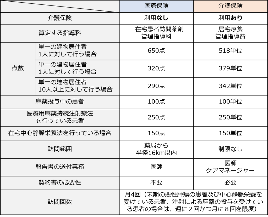 在宅患者訪問薬剤管理指導料(医療保険の方)・居宅療養管理指導費及び介護予防居宅療養管理指導費(介護保険の方)について